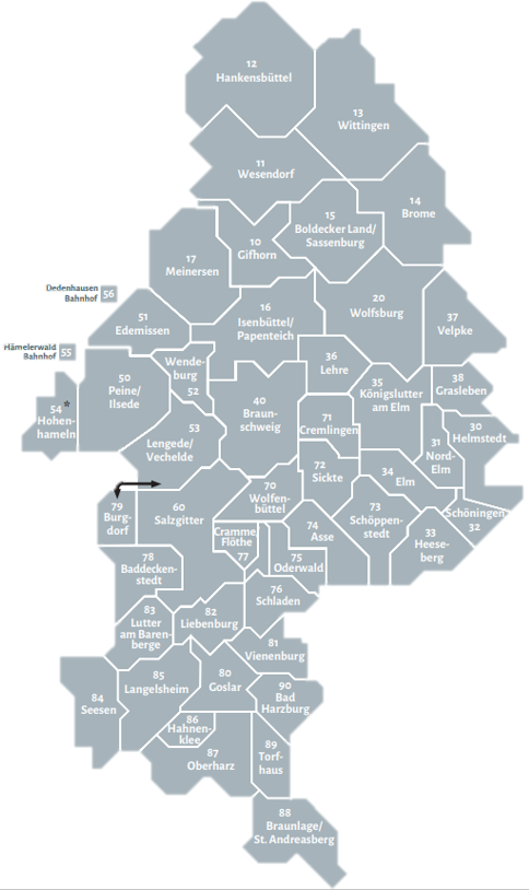 Fahren Sie nur innerhalb der Tarifzone 20 (Wolfsburg), 40 (Braunschweig) oder 80 (Goslar), gilt der Stadttarif. In anderen Tarifzonen gilt die Preisstufe 1. Befahren Sie zwei angrenzende Tarifzonen, zählt Preisstufe 2, für drei angrenzende Zonen gilt entsprechend die Preisstufe 3.